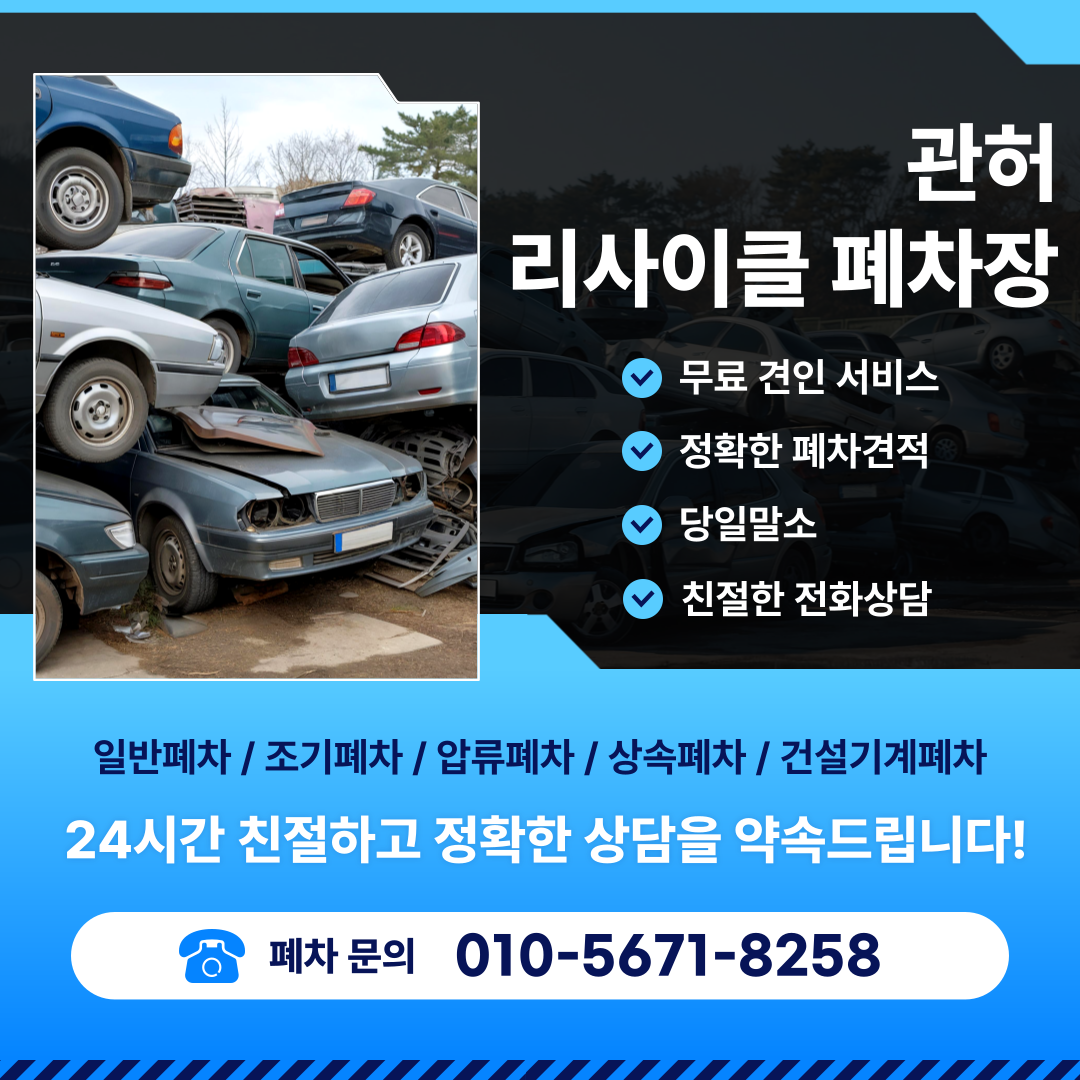 특히 폐차장에서 제공하는 기본 가격에 만족하지 마시고, 부품 재활용이 가능한 폐차장을 찾는 것이 무엇보다 중요합니다.